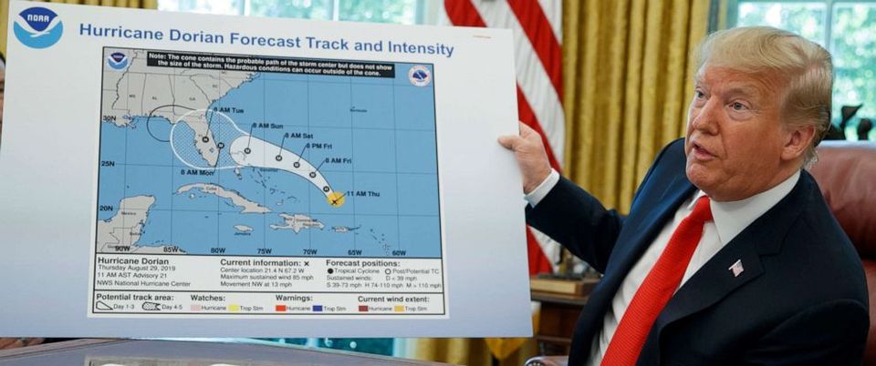But for our stable genius president #(44+1) we have a nice sample of his greatest work. He looks so proud! The most bigliest map ever! And he is the best weatherman in the hole universe!