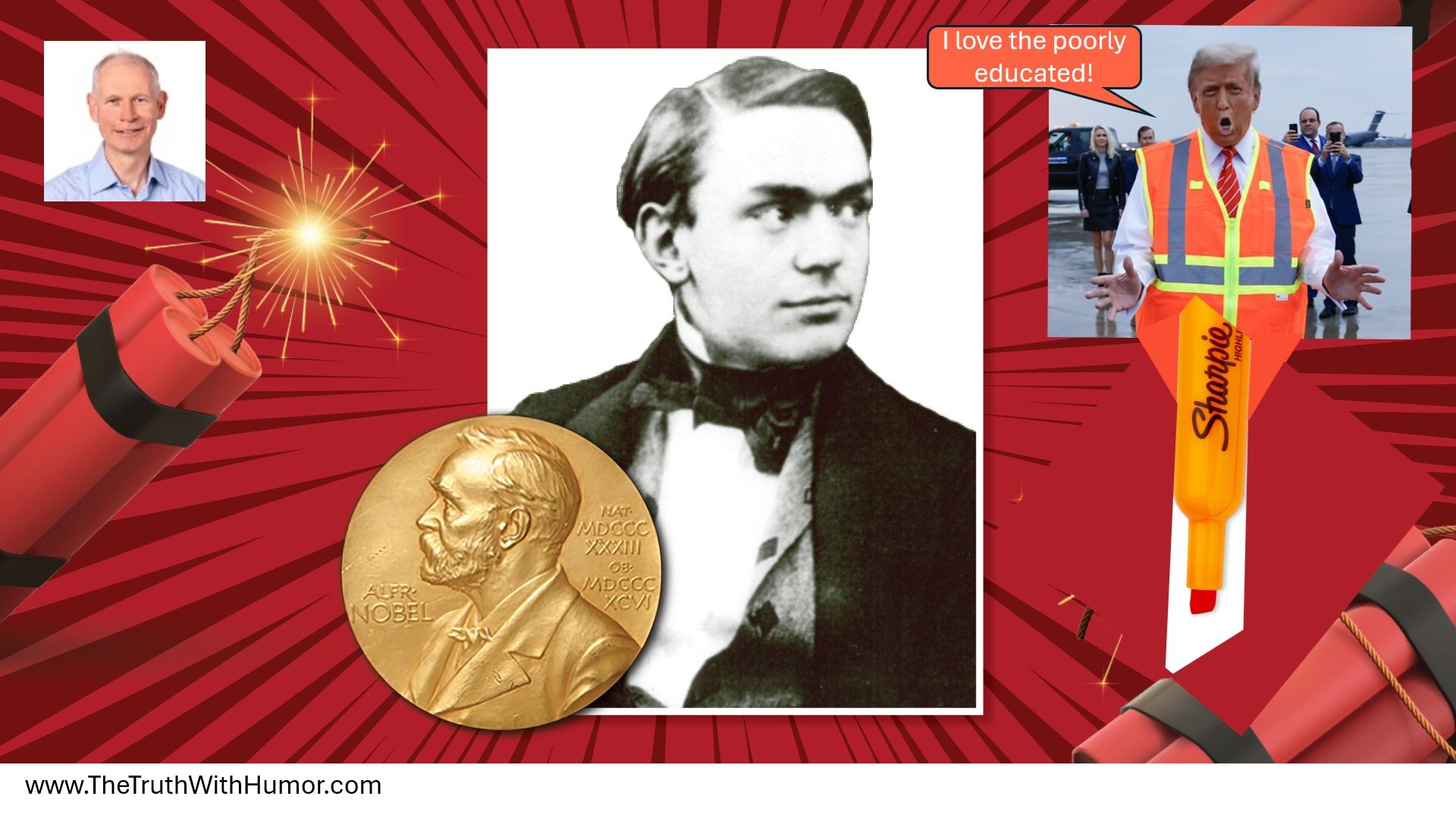 You may have heard how President Trump said in a press conference with Israel’s Prime Minister, that he deserves the Nobel Peace Prize, but that they will never give it to him. I hope you remember that Alfred Nobel was the inventor of dynamite. It made him rich, and he created the Nobel Prizes as a recognition of outstanding achievements in science and culture. I used a picture from the Inventors Hall of Fame as the canvas for my picture today. For those of you who care to know we are in National Engineers Week that we celebrated from February 16 to February 22, 2025.